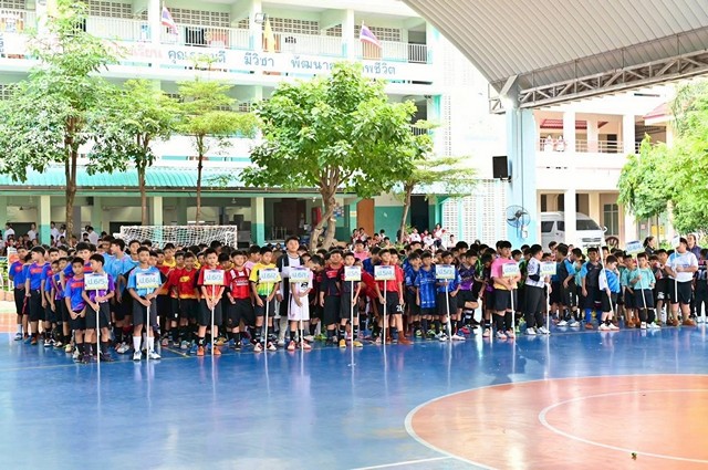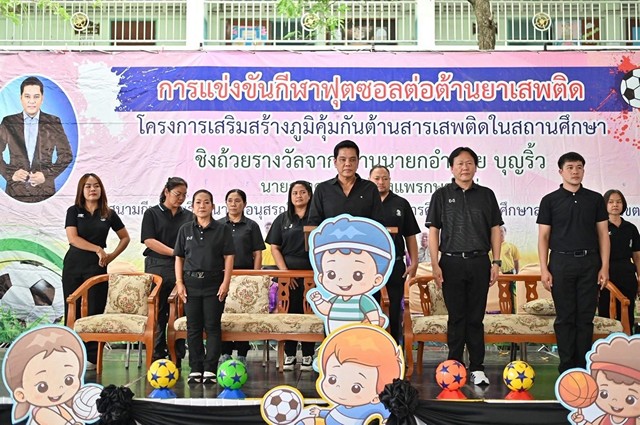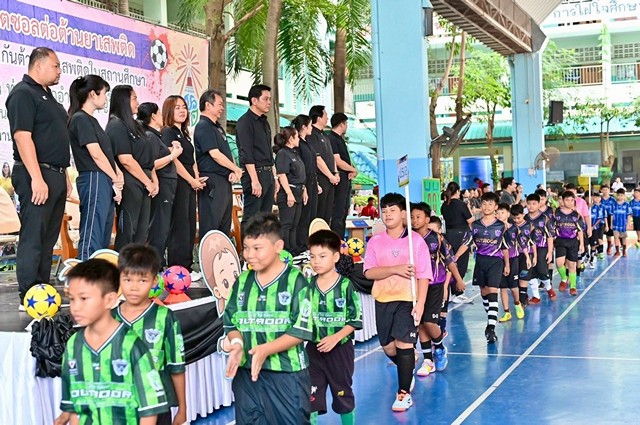 สมุทรปราการ-โรงเรียนนาคดีอนุสรณ์ จัดการแข่งขันกีฬาฟุตซอลต้านยาเสพติด ชิงถ้วยรางวัลนายกเทศมนตรีเมืองแพรกษาใหม่