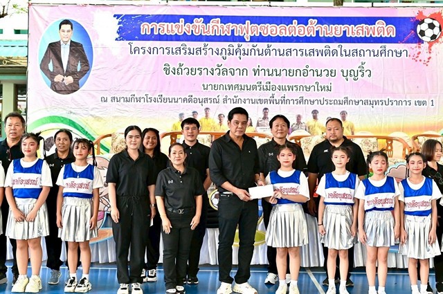 สมุทรปราการ-โรงเรียนนาคดีอนุสรณ์ จัดการแข่งขันกีฬาฟุตซอลต้านยาเสพติด ชิงถ้วยรางวัลนายกเทศมนตรีเมืองแพรกษาใหม่