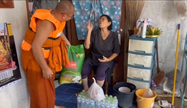 สุโขทัย เจ้าคณะตำบลลงพื้นที่ช่วยเหลือผู้ป่วยโรคไตบ้านถูกน้ำท่วม
