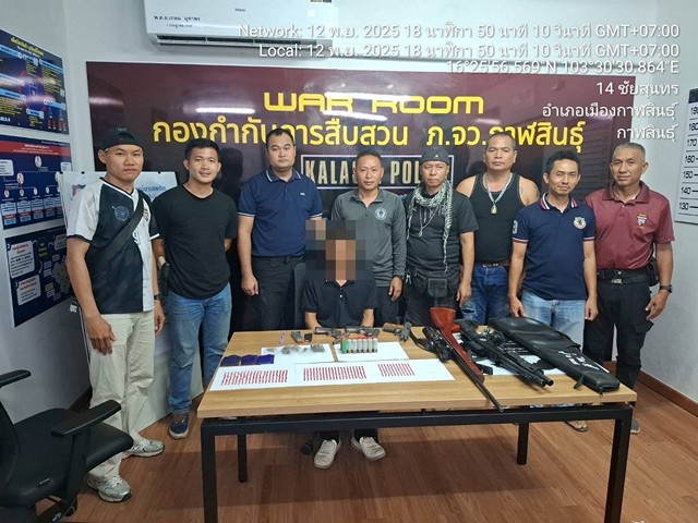 กาฬสินธุ์-สืบจังหวัดกาฬสินธุ์จับจนท.ธุรการ อบต.สามขา พร้อมยาบ้า-อาวุธปืนอื้อ