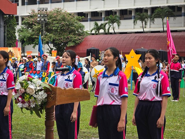 นางสาวนฤภร ชมพูทอง ประธานนักเรียน ประจำปี 2568 กล่าวว่า ฝ่ายกิจการนักเรียน ร่วมกับกลุ่มสาระการเรียนรู้สุขศึกษาและ พลศึกษา จัดให้มีการแข่งขันกรีฑาระหว่างคณะสี 5 คณะสี ประจำปีการศึกษา 2568 โดยมีทั้งหมด 5 คณะสีได้แก่ คณะเทอดจรรยา (สีเหลือง) คณะสามัคคี (สีแดง) คณะศรีวัฒนา (สีเขียว) คณะการุณรักษ์ (สีม่วง)และคณะภักดิ์พิรีย์ (สีฟ้า) เพื่อส่งเสริมให้นักเรียนรู้จักการทำงานร่วมกัน มีความสามัคคี และมีจิตวิญญาณนักกีฬา เพื่อส่งเสริมให้นักเรียนรู้จักการทำงานร่วมกันเป็นหมู่คณะ มีความสามัคคี มีน้ำใจนักกีฬา รู้แพ้ รู้ชนะ ให้อภัยซึ่งกันและกัน กิจกรรมประกอบด้วย การแข่งขันกรีฑา การประกวดขบวนพาเหรดแฟนซี การประกวดกองเชียร์และผู้นำเชียร์ โดยปีนี้ขบวนพาเหรดของแต่ละคณะสีจัดขึ้นภายใต้ธีม “เทิดพระเกียรติถวายความอาลัย พระพันปีหลวง” พร้อมการแต่งกายในชุดกีฬาประจำสีคณะอย่างงดงาม