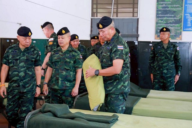จากนั้น ผู้บัญชาการทหารบก/ผู้บัญชาการศูนย์ปฏิบัติการกองทัพบกพร้อมด้วยคณะผู้บังคับบัญชา ได้เข้าตรวจเยี่ยมหน่วยฝึกทหารใหม่ มณฑลทหารบกที่ 22 มณฑลทหารบกที่ 22 ค่ายสรรพสิทธิประสงค์ อำเภอวารินชำราบ จังหวัดอุบลราชธานี ทั้งยังได้ตรวจสภาพความเป็นอยู่ในโรงนอน พื้นที่การฝึก ตลอดจนระบบสาธารณูปโภคต่างๆ ในหน่วยฝึก ในการนี้ ผู้บัญชาการทหารบกได้พบปะพูดคุยพร้อมมอบสิ่งของบำรุงขวัญกับทหารกองประจำการ ผลัดที่ 2/68 โดยมีแม่ทัพภาคที่ 2 และคณะผู้บังคับบัญชาให้การต้อนรับ ซึ่งได้เน้นย้ำถึงการปฏิบัติตามระเบียบการฝึกของกองทัพบกอย่างเคร่งครัด ควบคู่ไปกับการดูแลสุขภาพร่างกายและจิตใจตลอดห้วงระยะเวลาการฝึก