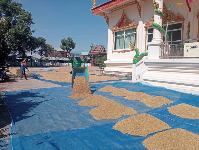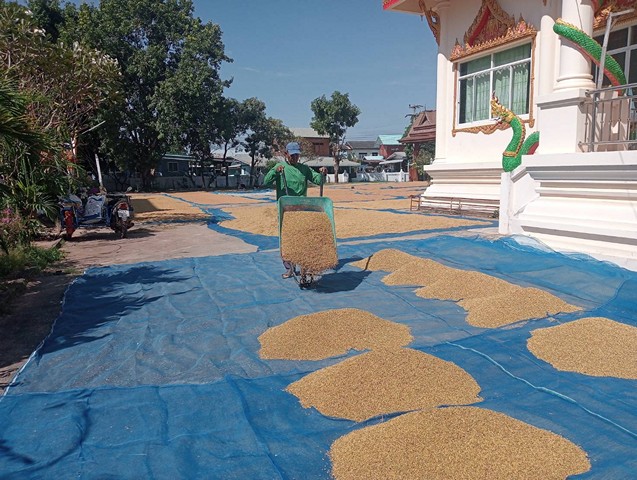 แต่การนำเมล็ดข้าวเปลือกมาผึ่งแดด ตามริมถนนหรือบริเวณหน้าบ้าน ถึงแม้ข้าวเปลือกจะราคาต่ำ แต่ก็เป็นที่หมายปองของคนร้าย ที่จะแอบมาลักขโมยไปขายเพื่อนำเงินไปซื้อยาบ้าเสพ ทั้งนี้ ชาวนาบางคนยังบอกว่าปีที่ผ่านมาถูกโจรขโมยข้าวเปลือกไป 20 กระสอบทีเดียว ปีนี้ได้ผลผลิตข้าวน้อย ไม่นำไปขาย เพราะจะเก็บไว้กิน แต่หากนำไปผึ่งแดดที่อื่นรู้สึกไม่ปลอดภัย กลัวจะถูกโจรมาลักขโมยเหมือนปีที่ผ่านมา จึงนามาผึ่งแดดในลานวัด ซึ่งมีประตูปิดมิดชิด มีพระเณรและสุนัขในวัดเป็นเพื่อนกันขโมย เพื่อความมั่นใจและปลอดภัยกว่านำไปผึ่งแดดที่อื่น
