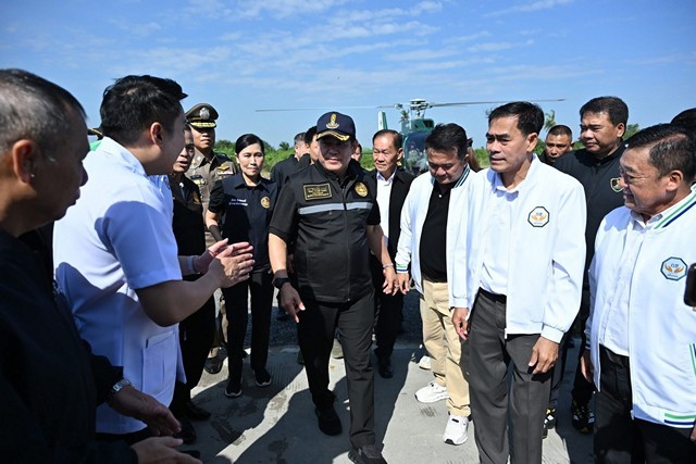รองนายกรัฐมนตรี และรัฐมนตรีว่าการกระทรวงเกษตรและสหกรณ์ พร้อมคณะลงพื้นทีตรวจติดตามจุดก่อสร้างโครงการประตูระบายน้ำแม่น้ำท่าจีน ที่จังหวัดนครปฐม
