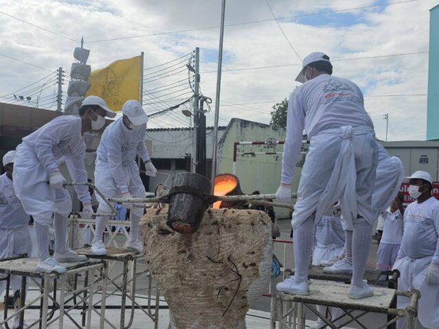 ชลบุรี-สาธุชนแห่ร่วมพิธีหล่อรูปเหมือนพระราชวัชรปัทมคุณ (หลวงปู่บัวเกตุ ปทุมสิโร) ขนาดสูง 2.65 เมตร
