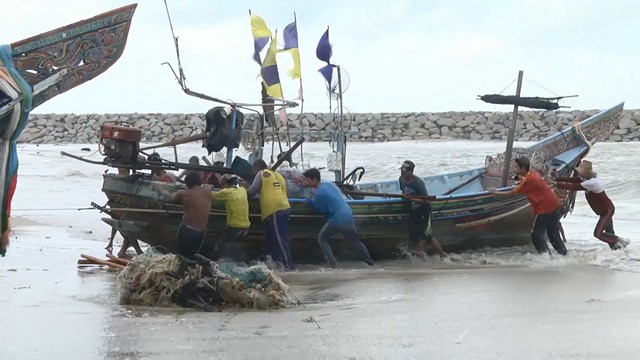 สงขลา-ฤดูมรสุมตะวันออกเฉียงเหนือ ขายฝั่งจังหวัดสงขลาทะเลมีคลื่นลมแรง 2-3 เมตร ชาวประมงพื้นบ้านหยุดออกเรือ