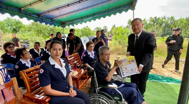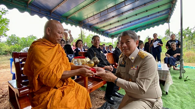 วันที่ 20 พฤศจิกายน 2568 เวลา 13 .29 น. ณ หมู่บ้านห้วงน้ำเค็ม หมู่ที่ 8 ตำบลสนามไชย อำเภอนายายอาม จังหวัดจันทบุรี นายมนต์สิทธิ์ ไพศาลธนวัฒน์ ผู้ว่าราชการจังหวัดจันทบุรี นายพีระศักดิ์ สนั่นเครื่อง นายอำเภอนายายอาม นางโสภิตนภา ประกอบความดี รองนายกเหล่ากาชาด พร้อมด้วยคณะกรรมการและสมาชิกเหล่ากาชาดจังหวัดจันทบุรี พระใบฎีกาลำแพ สัทธาธิโก เจ้าอาวาสวัดห้วงน้ำเค็มวนาราม