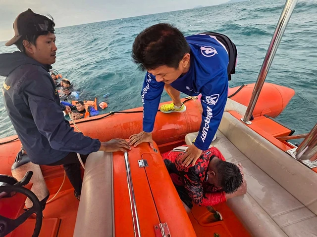 ลอยคออยู่กลางทะเล ห่างจากชายฝั่งเมืองพัทยา ประมาณ 15 ไมล์ทะเล (หรือประมาณ 30 กม.) ซึ่งทั้งหมดอยู่ในสภาพอิดโรย หนาวสั่น ทีมกู้ภัยฯ ได้ทำการช่วยเหลือและอยู่ในระหว่างการพาตัวกลับเข้าฝั่ง