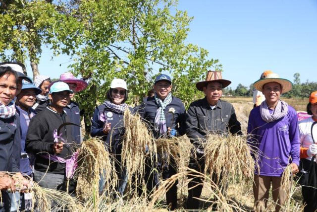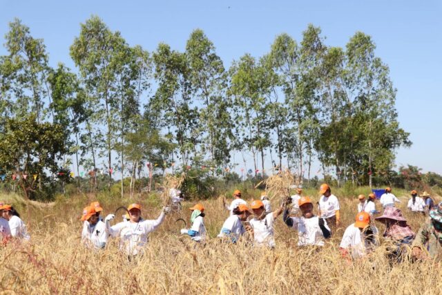 บึงกาฬ – คณะทำงานจิตอาสาจัดกิจกรรมลงแขกเกี่ยวข้าว สืบสานประเพณีท้องถิ่น และขยายแหล่งเรียนรู้เกษตรทฤษฎีใหม่