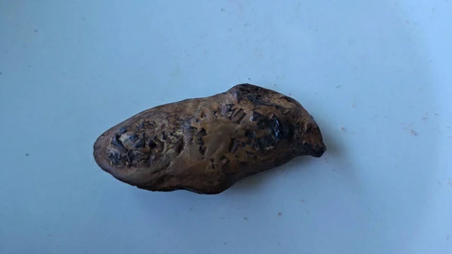 ภายหลังจากนั้นวันนั้นประมาณ 2 เดือนกว่าๆตนเองไปนอนเฝ้าสวนที่กระท่อมในสวน กลางดึกได้ปวดฉี่ จึงลุกมาฉี่ ก็พบกับแสงประหลาดเป็นลักษณะคล้ายแสงไฟ ห่างจากที่ตนอยู่ประมาณ 100 เมตร ตนจึงได้เดินเข้าไปดู ลักษณะดินตรงที่มีแสง เป็นลักษณะคล้ายมีอะไรฝังไว้ นูนๆขึ้นมา จึงได้ใช้เสียมเสาะเบาๆขึ้นมา เมื่อดูแล้วเห็นว่าเป็นหินที่มีลักษณะแปลกดี จึงได้เก็บใส่กระเป๋าและจะเขี่ยเผื่อเจออีก แต่พอจะขุดปรากฏว่าดินตรงที่จะขุดแข็งไม่สามารถขุดได้แล้ว จึงคิดว่า เขาคงให้แค่นี้ เมื่อนึกถึงคำที่ร่างทรงเคยบอกเมื่อ 2-3 เดือนก่อนที่จังหวัดเชียงใหม่ คิดว่าน่าจะสอดคล้องกัน