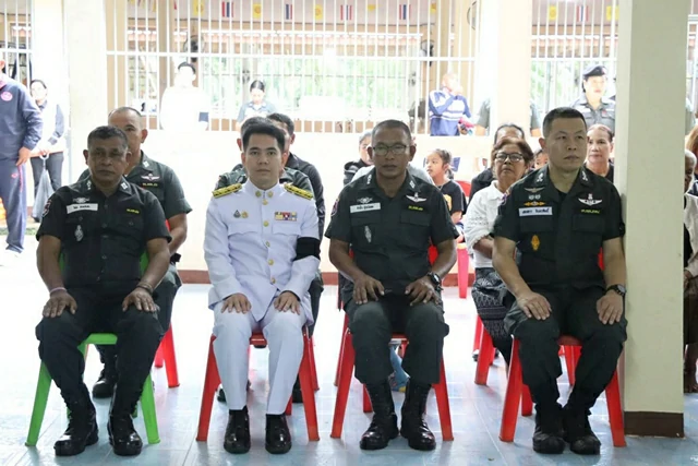 สตูล ผู้บัญชาการตำรวจตระเวนชายแดน เชิญพวงมาลาพระราชทาน วางหน้าหีบศพผู้เสียชีวิตจากเหตุการณ์ดินโคลนถล่ม จังหวัดสตูล
