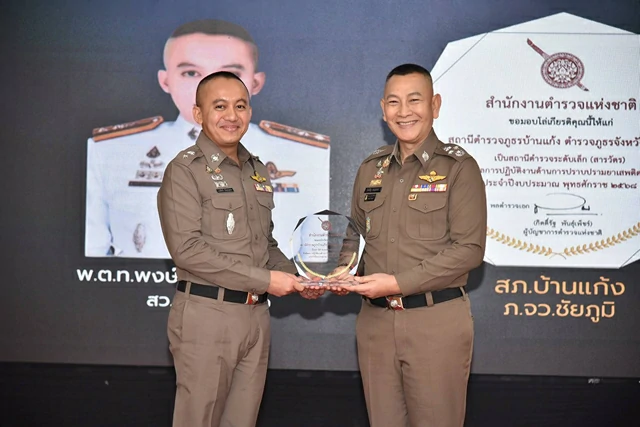สถานีตำรวจภูธรบ้านแก้ง จ.ชัยภูมิ มี พ.ต.ท.พงษ์สิทธิ์ จิโรจธนพงษ์ สว.สภ.บ้านแก้ง เป็นผู้แทนรับมอบ