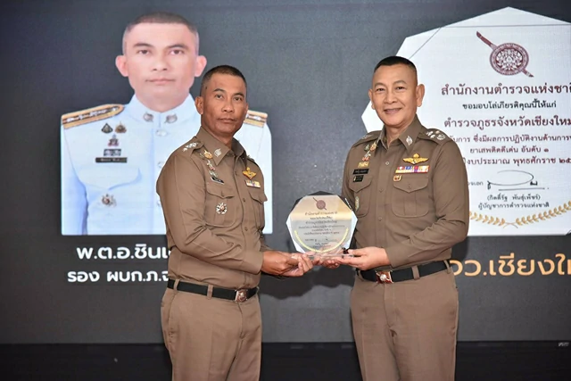 อันดับ 1 : ตำรวจภูธรจังหวัดเชียงใหม่ มี พ.ต.อ.ชินเดช ดีแท้ รอง ผบก.ภ.จว.เชียงใหม่ เป็นผู้แทนรับมอบ