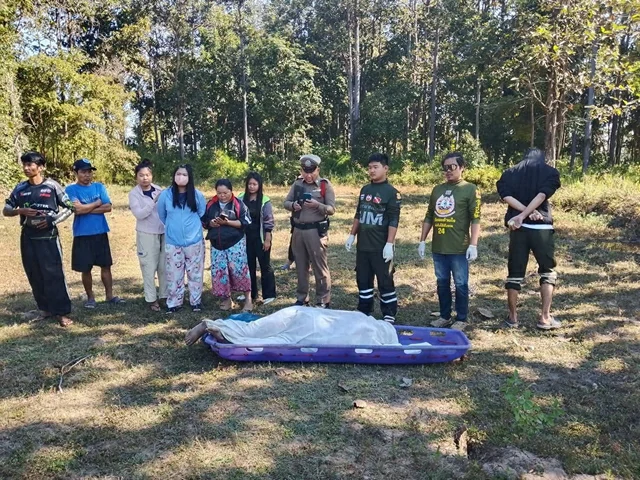 พบผู้เสียชีวิตชื่อนายประสิทธิ์ ทองน้อย อายุ 61 ปี นอนคว่ำหน้าอยู่ในหนองน้ำ ห่างจากฝั่งประมาณ 2 เมตร จากการสอบถามผู้ที่อยู่ในเหตุการณ์ทราบว่า ผู้เสียชีวิตออกไปหาปลาโดยใส่ “มอง” หรือ ตาข่ายดักปลาในหนองน้ำตั้งแต่เช้า แต่เมื่อเวลาประมาณ 07.00 น. ญาติสังเกตว่าไม่เห็นกลับบ้านตามปกติ เนื่องจากผู้เสียชีวิตต้องไปส่งหลานที่โรงเรียน จึงออกตามหาและพบว่าเสียชีวิตแล้ว