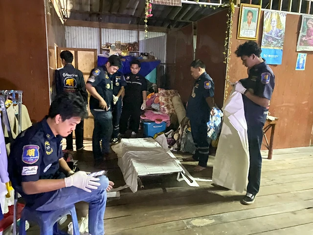 ที่เกิดเหตุเป็นบ้านไม้ชั้นเดียว พบชาวบ้านจำนวนหนึ่งยืนดูเหตุการณ์อยู่ด้านนอก ภายในห้องนอนพบผู้เสียชีวิตคือ นางสายชล (นามสมมุติ) อายุ 51 ปี สภาพเสียชีวิตมาแล้วประมาณ 2–3 ชั่วโมง จากการตรวจสอบเบื้องต้นไม่พบร่องรอยการถูกทำร้าย