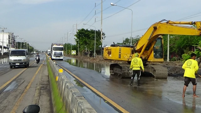 อ่างทอง-ทางหลวงอ่างทอง ระดมเครื่องสูบน้ำพร้อมกำลังคน เร่งเปิดถนนสายป่าโมก-สุพรรณบุรี หลังถูกน้ำท่วมขังนานนับเดือน