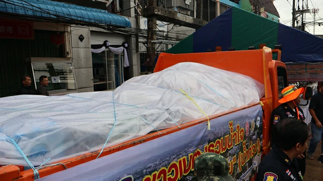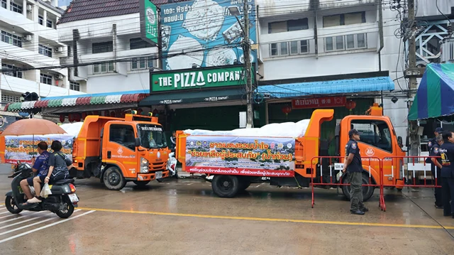 หลังจากได้สิ่งของที่รับบริจาคมาแล้ว ทางเจ้าหน้าที่ก็จะดำเนินการนำสิ่งของต่างๆ มาบรรจุแยกเป็นถุงยังชีพ ซึ่งภายในก็จะมีสิ่งของจำเป็นต่างๆ อาทิ ข้าวสาร ปลากระป๋อง มาม่า ขนมนมเนย ยารักษาโรค ก่อนที่จะนำไปมอบให้ผู้ประสบภัยน้ำท่วม ซึ่งในวันนี้ขบวนรถจะนำถุงยังชีพไปมอบให้กับมูลนิธิแม่กอเหนี่ยวยะลา และมูลนิธิแม่ทับทิม เพื่อนำไปมอบให้ผู้ประสบภัยน้ำท่วมในจังหวัดยะลา