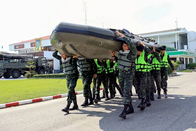 ซึ่งกำลังพลในชุดปฏิบัติการ ศูนย์บรรเทาสาธารณภัยของหน่วย ได้ผ่านการฝึกการช่วยเหลือประชาชนประกอบแผนเผชิญเหตุมาแล้ว และในครั้งนี้ได้ทำการฝึกทบทวนเพื่อเพิ่มความชำนาญและขีดความสามารถทั้งการใช้ยานพาหนะเรือท้องแบน และเรือยาง รวมไปถึงการช่วยเหลือประชนข้ามลำน้ำจากที่สูง ซึ่งกำลังพลได้รับการชี้แจงภารกิจจากคณะผู้บังคับบัญชา เพื่อให้มีความพร้อมในการออกปฏิบัติงานได้ทันทีเมื่อได้รับคำสั่ง