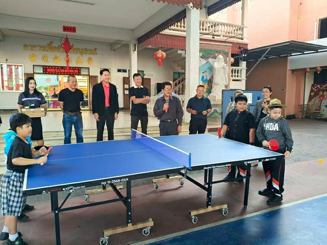 วันนี้ 26 พย.68 นายอุทัย ศรีสุขวสุ ประธานมูลนิธิร่วมมิตรสุโขทัย นายกมลศิลป์ เดชะศาศวัต ประธานศาลเจ้าปุงเถ่ากง-ม่า สุโขทัย พร้อมคณะกรรมการศาลเจ้าปุงเถ่ากง-ม่า สุโขทัย คณะกรรมการสมาคมพ่อค้าจังหวัดสุโขทัยมอบโต๊ะเทเบิลเทนนิส จำนวน 5ชุด และอุปกรณ์ฝึกซ้อมกว่าสามหมื่นบาท มีนายสุรพล อังศิริจินดา นายกสมาคมพ่อค้าจังหวัดสุโขทัย และประธานโรงเรียนกวางตงสุโขทัย พร้อมผู้บริหาร ครู นักเรียนให้การต้อนรับคณะพร้อมกล่าวขอบคุณคณะผู้มอบอุปกรณ์ โครงการจัดซื้อโต๊ะเทเบิลเทนนิส พร้อมอุปกรณ์มีผู้ร่วมสนับนุนในโครงการครั้งนี้