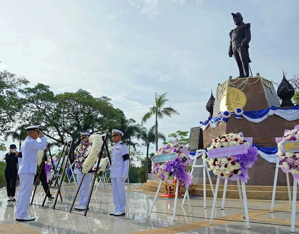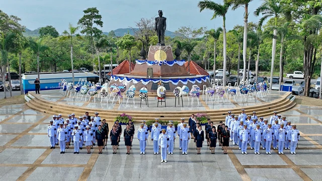 วันที่ 25 พ.ย.68 ที่บริเวณพระบรมราชานุสาวรีย์ พระบาทสมเด็จพระรามาธิบดีศรีสินทรามหาวชิราวุธฯ พระมงกุฎเกล้าเจ้าอยู่หัว รัชกาลที่ 6 ถ.สุขุมวิท กม.6 อ.สัตหีบ จ.ชลบุรี กองทัพเรือ พร้อมหน่วยงานภาครัฐและเอกชน ร่วมพิธีวางพวงมาลาถวายราชสักการะ พระบรมราชานุสาวรีย์พระบาทสมเด็จพระรามาธิบดีศรีสินทรามหาวชิราวุธฯ พระมงกุฎเกล้าเจ้าอยู่หัว รัชกาลที่ 6 เนื่องในวันคล้ายวันสวรรคตเวียนมาบรรจบครบปีที่ 100 โดยมี พลเรือเอก กรวิทย์ ฉายะรถี ผู้บัญชาการกองเรือยุทธการ ซึ่งเป็นผู้แทนผู้บัญชาการทหารเรือเป็นประธานในพิธีครั้งนี้ พร้อมด้วย พลเรือโท ภานุมาศ ธนะพานิช ผู้บัญชาการฐานทัพเรือสัตหีบ ตลอดจนผู้แทนหน่วยขึ้นตรงกองทัพเรือ หน่วยงานภาครัฐ และเอกชนในพื้นที่อำเภอสัตหีบ จังหวัดชลบุรี และใกล้เคียง เข้าร่วมในพิธี