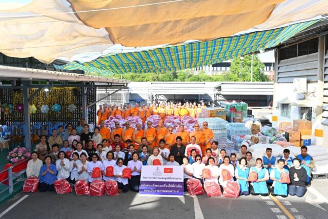 วันที่ 27 พฤศจิกายน 2568 ที่อาคารครัว 71 ปี วัดพระธรรมกาย ตำบลคลองสาม อำเภอคลองหลวง จังหวัดปทุมธานี วัดพระธรรมกายและมูลนิธิธรรมกาย พร้อมด้วยเยาวชนอาสาจาก ชมรมพุทธศาสตร์ มหาวิทยาลัยสงขลานครินทร์ (ม.อ.) วิทยาเขตหาดใหญ่ และวิทยาเขตปัตตานี ร่วมกันจัดส่งถุงยังชีพและสิ่งของจำเป็นช่วยเหลือผู้ประสบภัยน้ำท่วมในพื้นที่ภาคใต้ รวมน้ำหนักกว่า 15 ตัน