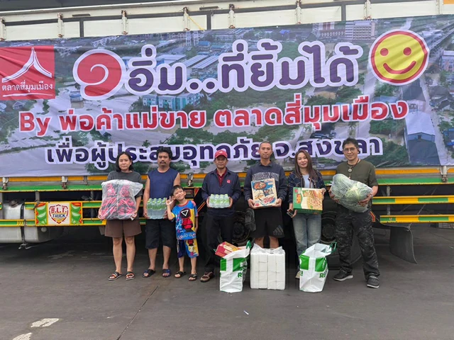 ปทุมธานี พ่อค้าแม่ค้าตลาดสี่มุมเมืองระดมความช่วยเหลือผู้ประสบภัยน้ำท่วมหาดใหญ่