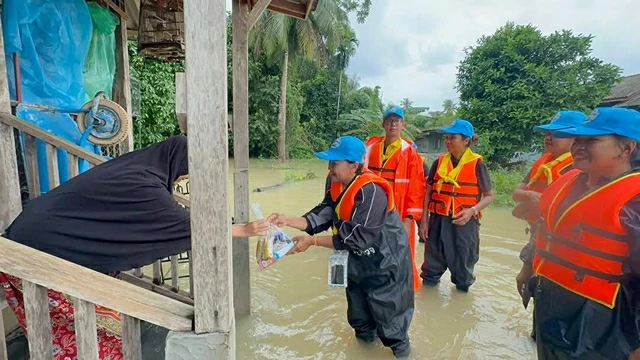 คุณกนกวรรณ พันธุ์เพ็ชร์ นายกสมาคมแม่บ้านตำรวจ และสมาชิกแม่บ้านตำรวจ มีความห่วงใยพี่น้องประชาชนชาวใต้ที่ประสบอุกทกภัย โดยเฉพาะอย่างยิ่งในพื้นที่ อ.หาดใหญ่ จ.สงขลา ที่ยังต้องการความช่วยเหลืออย่างต่อเนื่อง