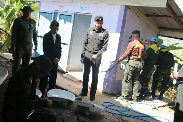 โอกาสนี้ ผู้บัญชาการมณฑลทหารบกที่ 310 ได้ตรวจเยี่ยมการปฏิบัติงานของชุดช่างที่เข้าดำเนินการปรับปรุงและซ่อมแซมระบบสาธารณูปโภคพื้นฐานภายในโรงเรียน เพื่อให้สามารถใช้งานได้อย่างมีประสิทธิภาพและปลอดภัยยิ่งขึ้น