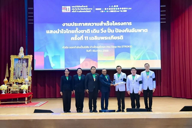 วันนี้ ( 1 ธันวาคม 2568 ) ณ ห้องประชุมราชปนัดดาสิรินธร อาคารศรีสวรินทิรา ชั้น 1 คณะแพทยศาสตร์ศิริราชพยาบาล นายชัชวาลย์ เบญจสิริวงศ์ ผู้ว่าราชการจังหวัดร้อยเอ็ด พร้อมด้วย นพ.สุรเดชช ชวะเดช นายแพทย์สาธารณสุขจังหวัดร้อยเอ็ด และนายวิทยา โคตรท่าน รองนายแพทย์สาธารณสุขจังหวัดร้อยเอ็ด เข้ารับถ้วยรางวัลพระราชทานฯ และโล่เกียรติยศ จากโครงการ “แสงนำใจไทยทั้งชาติ เดิน วิ่ง ปั่น ป้องกันอัมพาต ครั้งที่ 11 เฉลิมพระเกียรติ”