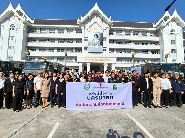 ด้วยจังหวัดนครนายก เหล่ากาชาดจังหวัดนครนายก ผู้บัญชาการมณฑลทหรบกที่ 12 และผู้บริหารบริษัท อึ้งฮวด ทั้ง 6 สาขา กำหนดจัดพิธีส่งขบวนรถเพื่อส่งมอบสิ่งของอุปโภคบริโภคไปยังผู้ประสบอุทกภัยทางภาคใต้ ที่เกิดเหตุการณ์อุกทกภัยในภาคใต้นับเป็นภัยพิบัติที่ส่งผลกระทบต่อพี่น้องประชาชนในวงกว้าง ทำให้เกิดความเดือดร้อนและต้องการความช่วยเหลืออย่างเร่งด่วน ซึ่งในกิจกรรมนี้แสดงให้เห็นถึงพลังแห่งความเมตตาและน้ำใจของชาวจังหวัดนครนายก ที่ระดมความช่วยเหลือร่วมบริจาคอาหารและสิ่งของ และถุงยังชีพ มูลค่ารวม 1,200,000 บาท เพื่อช่วยเหลือพี่น้องทางภาคใต้