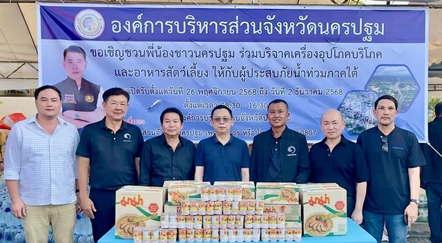 เพื่อนำไปส่งต่อให้แก่ประชาชนที่ได้รับความเดือดร้อนจากเหตุอุทกภัย ในพื้นที่ภาคใต้ และ นายกอบจ.นครปฐม ต้องขอขอบคุณพี่น้องประชาชนทุกท่าน และทุกภาคส่วน ที่่ได้นำเครื่องอุปโภคบริโภค และสิ่งของจำเป็นต่างๆ มาร่วมช่วยเหลือบรรเทาความทุกข์แก่ผู้ประสบภัยน้ำท่วมภาคใต้ ในครั้งนี้ ชาวนครปฐมขอส่งความห่วงใยโดยการส่งมอบสิ่งของจำเป็น ขอให้ผ่านช่วงเวลานี้ไปให้ได้ และขอให้สถานการณ์กลับเข้าสู่ภาวะปกติโดยเร็ว