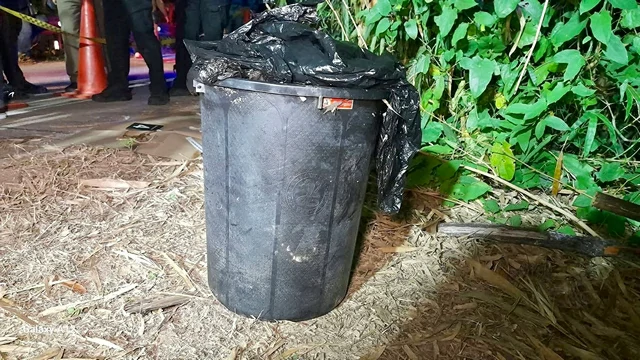 วันที่ 4 พฤศจิกายน 2568 เวลา 17.30 น.ร้อยตำรวจโทศุภชัย กู้เกียรติ ตำแหน่งสารวัตรสอบสวน สภ.นายายอาม ภ.จว.จันทบุรี ได้รับแจ้งจากชาวบ้านว่าในพื้นที่ว่าพบถังขยะสีดำ ซึ่งบริเวณนั้นไม่ใช่ที่ทิ้งขยะหรือนำถังขยะมาทิ้ง จึงเป็นที่ผิดสังเกตลักษณะเป็นถังสีดำนั้นถูกทิ้งไว้ข้างๆกอไผ่ริมทางบ้านถนน คอนกรีต บ้านห้วงหิน หมู่ 6 ต.นายายอาม อ.นายายอาม จ. จันทบุรี