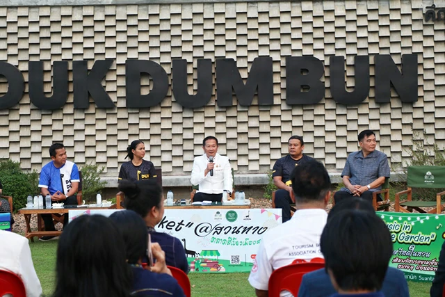 “เป็นการร่วมบูรณาการระหว่างภาครัฐ – เอกชน เพื่อสร้างชุมชนที่เข้มแข็ง มีรายได้ที่ยั่งยืน ให้ช่วงเดือนธันวาคม เดือนสุดท้ายของปี จะเข้าสู่เทศกาลปีใหม่นักท่องเที่ยวที่เข้ามาในพื้นที่ก็จะได้มาชมของดีกาฬสินธุ์ ที่จะรวบรวมมาไว้ที่ สวนทางออแกนิคร้านดึกดำบรรพ์ ที่นอกเหนือจากแวะมานั่งทานอาหาร เครื่องดื่ม ชมสวนสวย ๆ แล้ว ยังจะได้ช็อปปิ้งสินค้าคุณภาพกลับบ้านไปด้วย ขณะเดียวกัน กิจกรรมวิ่งเพื่อการกุศล ที่กำลังจะเกิดขึ้นในวันที่ 1 มีนาคม 2569 ขอเชิญชวนนักวิ่งมาร่วมวิ่งเลาภู ดูไดโนเสาร์ กับ ดึกดำบรรพ์ฮาร์ฟมาราธอน ได้เที่ยว ได้วิ่งเพื่อสุขภาพ และได้ทำบุญ อยากให้มากันเยอะ ๆ สำหรับสวนทางออแกนิค ร้านดึกดำบรรพ์ เป็นทั้งคาเฟ่ ร้านอาหาร และยังมีโซนสุขนิยม ให้นักท่องเที่ยวได้ช็อปสินค้าเพื่อสุขภาพจากชุมชนมากมาย นับว่าเป็นศูนย์รวมอีกแห่งหนึ่งที่จะบริการนัท่องเที่ยวได้ครบวงจร“ รองผู้ว่าฯ กล่าว