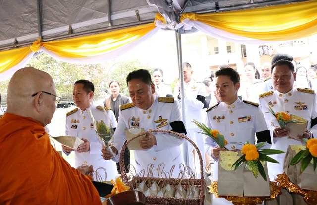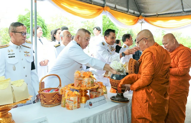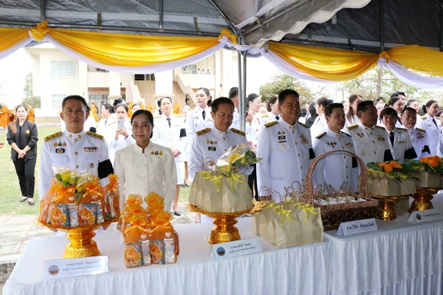 โดยมีพระเมธีวัชราจารย์ เจ้าคณะจังหวัดกาฬสินธุ์ เป็นประธานฝ่ายสงฆ์ และมีพระญาณรักขิต เจ้าคณะจังหวัดกาฬสินธุ์ (ธรรมยุต)และคณะสงฆ์ พร้อมด้วยนำพระภิกษุสงฆ์ออกรับบิณฑบาตร โดยมีนายวิรัช พิมพะนิตย์ สส.กาฬสินธุ์ เขต 1 นายธนภัทร ณ ระนอง รองผู้ว่าราชการ จ.กาฬสินธุ์ นายผดุงศักดิ์ อิ่มเอิบ รองผู้ว่าราชการ จ.กาฬสินธุ์ พล.ต.ต.ทรงพล บริบาลประสิทธิ์ ผบก.ภ.จว.กาฬสินธุ์ พ.อ.สิทธิศักดิ์ พรหมดิเรก รองผอ.รมน.กาฬสินธุ์ นายสันติ จัตุพันธ์ ปลัด จ.กาฬสินธุ์ นางเฉลิมขวัญ หล่อตระกูล นายก อบจ.กาฬสินธุ์ นายกีรฒิการย์ พิมพะนิตย์ นายกเทศมนตรีเมืองกาฬสินธุ์ ข้าราชการ ตุลาการ ทหาร ตำรวจ สมาชิกเหล่ากาชาด และ พสกนิกรชาว จ.กาฬสินธุ์ทุกหมู่เหล่าร่วมทำบุญตักบาตร เพื่อถวายเป็นพระราชกุศล