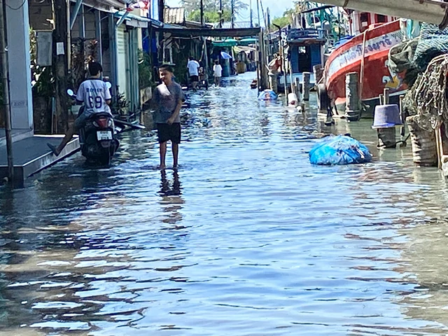 ตราด-อ.คลองใหญ่ คืบหน้านํ้าทะเลหนุนสูง หลายพื้นที่ของอําเภอคลองใหญ่ได้รับผลกระทบจากปรากฎการณ์น้ำทะเลหนุนสูงเป็นประวัติการณ์ทั้ง 3 ตำบล