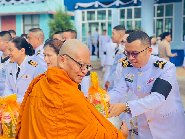 พลเรือตรี กิติศักดิ์ สายนุช ผู้อำนวยการโรงพยาบาลสมเด็จพระนางเจ้าสิริกิติ์ กรมแพทย์ทหารเรือ มอบหมายให้ นาวาเอกกฤชทอง แท่งทอง หัวหน้ากลุ่มงานห้องตรวจโรคประกันสังคมและผู้ป่วยทั่วไป โรงพยาบาลสมเด็จพระนางเจ้าสิริกิติ์ฯ เป็นผู้แทน พร้อมด้วยกำลังพล เข้าร่วมพิธีตักบาตรข้าวสารอาหารแห้ง และพิธีวางพานพุ่มดอกไม้ เนื่องในวันคล้ายวันพระบรมราชสมภพ พระบาทสมเด็จพระบรมชนกาธิเบศร มหาภูมิพลอดุลยเดชมหาราช บรมนาถบพิตร วันชาติ และวันพ่อแห่งชาติ 5 ธันวาคม 2568 ณ ศาลาประชาคม ที่ว่าการอำเภอสัตหีบ จ.ชลบุรี