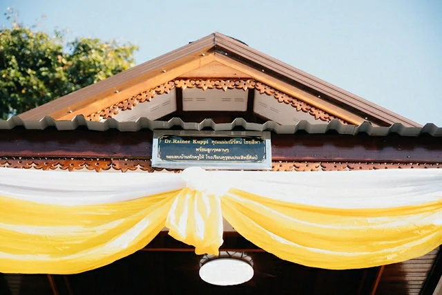 นางมณีรัตน์กล่าวอีกว่า สำหรับการทำบุญสร้างกุฎิถวายวัด และสร้างบ้านพักครูมอบให้โรงเรียนฯ ของตนกับ ดร.ไรเนอร์ คุ๊ปปี้ สามี และครอบครัวในครั้งนี้ สืบเนื่องจากเห็นว่าทางวัดบูรพาคำมะโฮ วัดประจำหมู่บ้าน ยังขาดแคลนกุฎิสงฆ์ จึงได้หารือกับคณะสงฆ์ ผู้นำหมู่บ้านและคณะกรรมการวัด เพื่อดำเนินการจัดสร้างกุฎิไม้ถวาย โดยปวารณาตนเป็นเจ้าภาพสร้างถวาย เป็นจำนวนเงิน 500,000 บาท ขณะเดียวกันยังปรึกษากับคณะกรรมการสถานศึกษา คณะครู โรงเรียนคุรุชนประสิทธ์ศิลป์ ซึ่งเป็นโรงเรียนประจำหมู่บ้าน ในการจัดสร้างบ้านพักครู จำนวน 2 หลัง มูลค่า 1,200,000 บาท เพื่อเป็นที่พักอาศัยของข้าราชการครู ได้มีบ้านพักที่มั่นคง สะดวก สะอาด ปลอดภัย ทั้งนี้ เพื่อเป็นส่วนหนึ่งในการร่วมทำบุญจรรโลงพระพุทธศาสนา และประหยัดงบประมาณช่วยทางราชการ เมื่อการจัดสร้างกุฎิและบ้านพักครูเสร็จสมบูรณ์ จึงได้กำหนดประกอบพิธีถวายและส่งมอบพร้อมกันในวันนี้