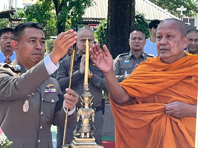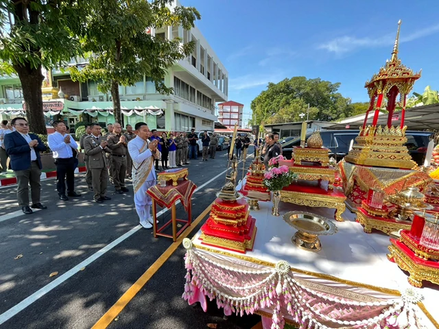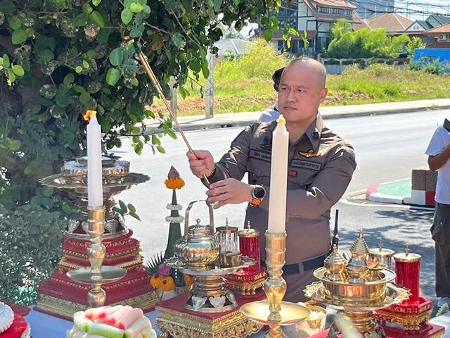 สมุทรปราการ-พิธีบวงสรวงต้อนรับ บางแก้ว 1 พ.ต.อ.พิสุทธิ์ จันทรสุวรรณ ผกก.สภ.บางแก้ว ข้าราชการตำรวจร่วมต้อนรับ