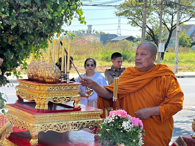 เมตตาเป็นประธานในพิธีจุดธูปเทียนบวงสรวงศาลพระพรหม ศาลตายาย เพื่อความเป็นสิริมงคลในโอกาสต้อนรับ พ.ต.อ.พิสุทธิ์ จันทรสุวรรณ ผกก.สภ.บางแก้ว สมุทรปราการ