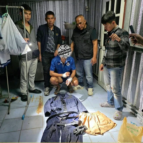 จากการตรวจค้นภายในห้องพักและบริเวณที่ผู้ต้องหาให้การนำชี้ เจ้าหน้าที่ตรวจพบของกลางรวม 12 รายการ ได้แก่ เสื้อผ้าเปื้อนเลือด อาวุธมีด โทรศัพท์มือถือ และรถจักรยานยนต์ของผู้เสียชีวิต ซึ่งสอดคล้องกับคำรับสารภาพและพยานหลักฐานทางคดี