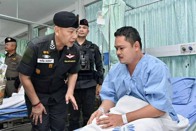 ผบ.ตร.ลงพื้นที่อุบลราชธานี ติดตามสถานการณ์ชายแดนไทย – กัมพูชา เยี่ยม 6 ตำรวจบาดเจ็บ ปลุกขวัญ ตชด. สนับสนุนยุทโธปกรณ์เสริมทัพแนวหน้า กำชับดูแล รร.ตชด ย้ำเข้มพิทักษ์ส่วนหลังคุ้มภัยประชาชน เผย 2 ตชด.เจ็บจากปะทะขอกลับไปสู้ต่อทันที