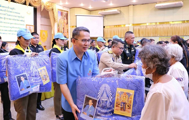 วันที่ 9 ธันวาคม 2568 ที่หอประชุมธรรมาภิบาล เทศบาลเมืองกาฬสินธุ์ นายสุวรรธณ์ เข็มธนเพ็ชร ผู้ว่าราชการ จ.กาฬสินธุ์ ประธานกรรมการมูลนิธิราชประชานุเคราะห์ประจำ จ.กาฬสินธุ์ เชิญผ้าห่มกันหนาวพระราชทาน พร้อมชุดยาและเวชภัณฑ์ วางบนพานหน้าพระบรมฉายาลักษณ์พระบาทสมเด็จพระเจ้าอยู่หัว เพื่อมอบให้นายอำเภอทั้ง 18 อำเภอ และนายกีรฒิการย์ พิมพะนิตย์ นายกเทศมนตรีเมืองกาฬสินธุ์ รวมจำนวน 2,300 ชุด และมอบผ้าห่มกันหนาวพระราชทาน พร้อมชุดยาและเวชภัณฑ์ให้แก่ประชาชนในเขตเทศบาลเมืองกาฬสินธุ์ จำนวน 200 ชุด