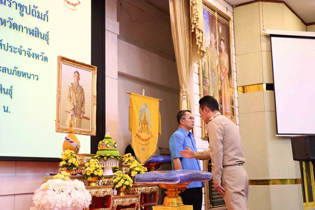 โดยมีผู้พิพากษาหัวหน้าศาล จ.กาฬสินธุ์ อัยการ จ.กาฬสินธุ์ นายธนภัทร ณ ระนอง รองผู้ว่าราชการ จ.กาฬสินธุ์ พ.อ.สิทธิศักดิ์ พรหมดิเรก รองผอ.รมน.กาฬสินธุ์ นายสันติ จัตุพันธ์ ปลัด จ.กาฬสินธุ์ รองผู้บังคับการตำรวจภูธร จ.กาฬสินธุ์ หัวหน้าส่วนราชการ คณะกรรมการเหล่ากาชาด และนายอำเภอทั้ง 18 อำเภอ เข้าร่วมพิธีอย่างพร้อมเพรียง