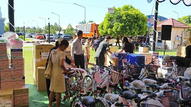 การจำหน่ายสลากกาชาดการกุศล ฉบับละ 100 บาท รางวัลที่ 1 ลุ้นรับรถยนต์ มิตซูบิชิ รุ่น Triton 4 ประตู รางวัลที่ 2 รถยนต์ มิตซูบิชิ รุ่น Triton MEGA CAP รางวัลที่ 3 รถยนต์ มิตซูบิชิ รุ่น Attrage 1.2 รถจักรยานยนต์ ขนาดไม่น้อยกว่า 100 ซีซี สร้อยคอทองคำ ตู้เย็น และพัดลม พร้อมมีการแสดงศิลปวัฒนธรรมของนักเรียน นักศึกษา และการจำหน่ายสินค้าอุปโภคบริโภค