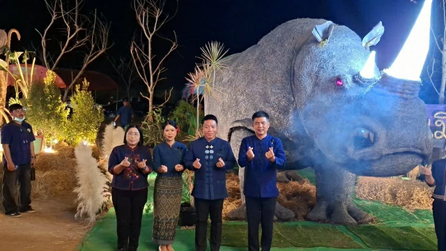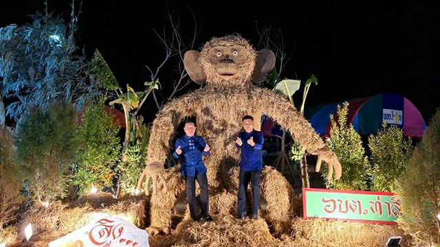 ซึ่งในปีนี้ได้มีการจัดประกวดการตกแต่งฟางข้าวเป็นรูปต่างๆ ซึ่งแต่ละหน่วยงานองค์กรต่างๆได้ระดมพลังนำฟางข้าวมาสร้างสรรค์ผลงานโชว์ได้อย่างโดดเด่น มีทั้งนำฟางมามัดทำเป็นรูป เต่า หมี เสือโคร่ง นกยูง นกแก้ว ช้าง ม้า วัว ควาย รวมถึงแรดตัวโต เป็นต้น