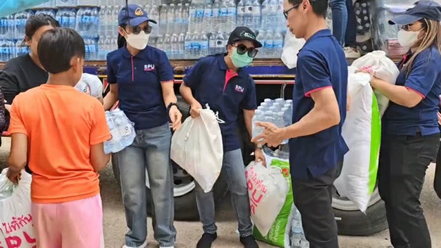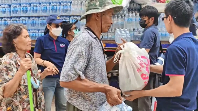 โดยมีเจ้าหน้าที่ของหน่วยงานเอกชนเป็นผู้อำนวยความสะดวก และแจกถุงยังชีพด้วยเจ้าหน้าที่ของตนเองเป็นไปด้วยความเรียบร้อย