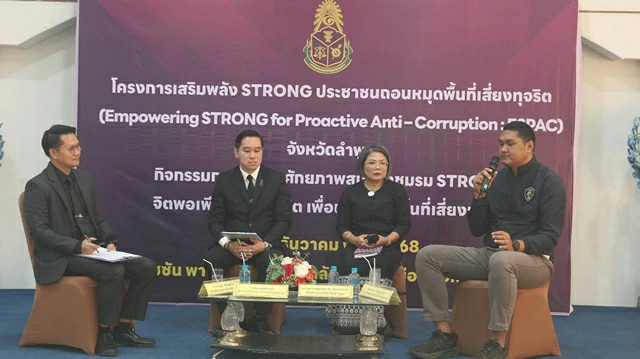 ลำพูน – จังหวัดลำพูนเดินหน้า “STRONG” ชูพลังประชาชนถอนหมุดพื้นที่เสี่ยงทุจริต ป้องกันปัญหาแรงงานข้ามชาติผิดกฎหมาย ภายใต้โครงการเสริมพลัง STRONG ประชาชนถอนหมุดพื้นที่เสี่ยงทุจริต(Empowering STRONG for Proactive Anti – Corruption : ESPAC)