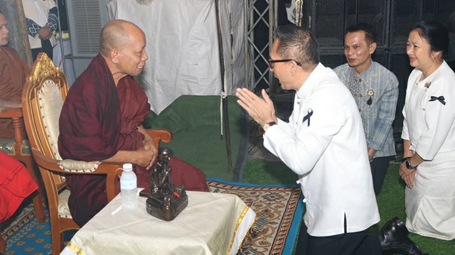 วันนี้( 11 ธันวาคม 2568 ) เวลา 09.00 น. พระบาทสมเด็จพระเจ้าอยู่หัว ทรงพระกรุณาโปรดเกล้าโปรดกระหม่อมให้ นายสมศักดิ์ อนุราชเสนา ประจำสำนักพระราชวังพิเศษ ระดับ 10 เชิญผ้าไตร และเครื่องไทยธรรมพระราชทาน เพื่อไปถวายแด่พระสงฆ์ ในพิธีเจริญพระพุทธมนต์และเจริญจิตตภาวนา ตามแนวทางหลักธรรมพระราชทาน “ธรรมนาวา วัง” เฉลิมพระเกียรติพระบาทสมเด็จพระเจ้าอยู่หัว ตามโครงการพระราชดำริฯ “เรือหลวงแห่งธรรมสถิตนคเรศ” ณ วัดวิมลนิวาส อำเภอเมืองร้อยเอ็ด จังหวัดร้อยเอ็ด โดยมีนายชัชวาลย์ เบญจสิริวงศ์ ผู้ว่าราชการจังหวัดร้อยเอ็ด พร้อมด้วยรองผู้ว่าราชการจังหวัดร้อยเอ็ด ตุลาการ ศาล ทหาร ตำรวจ หัวหน้าส่วนราชการ และประชาชน เข้าร่วม
