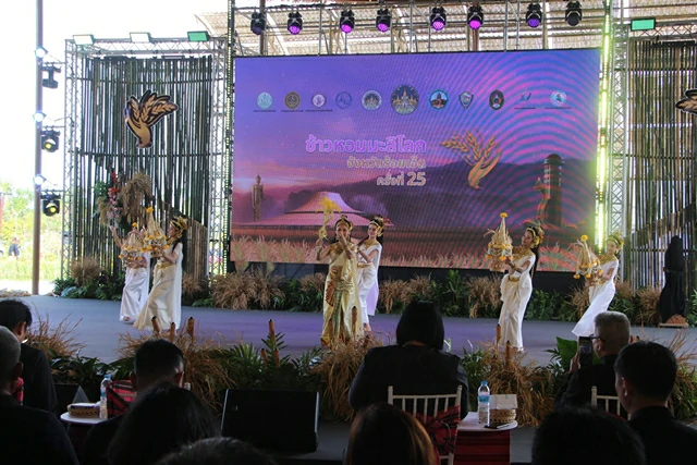 เวลา 11.30 น. ณ บริเวณเวทีกลางงอบใหญ่ อ่างเก็บน้ำธวัชชัย ตำบลมะอึ อำเภอธวัชบุรี จังหวัดร้อยเอ็ด ผู้ว่าราชการจังหวัดร้อยเอ็ด เปิดกิกิจกรรมการเจรจาการค้า ข้าวหอมมะลิ และลงนามในบันทึกข้อตกลงการซื้อขายข้าวหอมมะลิระหว่างผู้ซื้อและผู้ขาย ในงานเทศกาลข้าวหอมมะลิโลก ครั้งที่ 25 ปี 2568 โดยมีนายพิชัยยา ตุระซอง รองผู้ว่าราชการจังหวัดร้อยเอ็ด, นายจีระศักดิ์ ศรีเพชร พาณิชย์จังหวัดร้อยเอ็ด พร้อมด้วยหัวหน้าส่วนราชการ ภาครัฐ ภาคเอกชน ผุ้ประกอบการ และประชาชน ร่วมงาน