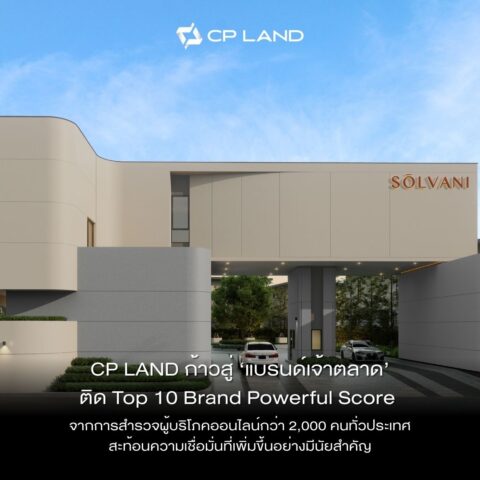 ในเวทีเดียวกัน บริษัท ซี.พี.แลนด์ จำกัด (มหาชน) หรือ CP LAND หนึ่งในผู้พัฒนาอสังหาริมทรัพย์ชั้นนำของไทย ถูกจัดอยู่ในกลุ่ม Top 10 Brand Powerful Score และขยับสถานะจาก “แบรนด์ผู้ท้าชิง” ขึ้นสู่กลุ่ม “แบรนด์เจ้าตลาด (Market Leader Brand) สะท้อนว่าบ้านและโครงการของ CP LAND กำลัง “ตรงใจ” ผู้บริโภคมากขึ้นอย่างมีนัยสำคัญ